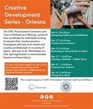 The CDP, Provincetown Commons and Town of Orleans are offering a series of free workshops for individuals looking to elevate their creative practice. Participants will hear from artists and creative professionals on a variety of topics. Join one or all. Workshops are free, but registration is recommended. Sessions will be held at snow library.