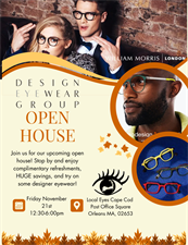 Our office is hosting an open house joined by Design Eyewear Group! We will be offering complimentary refreshments, opportunity to try on designer eywear, as well as HUGE savings! Design Eyewear is celebrating their 30th anniversary - 30 years of crafting and representing a diverse group of eyewear brands, including one from Paris. Stop by and visit during this exciting event, we would love to see you!