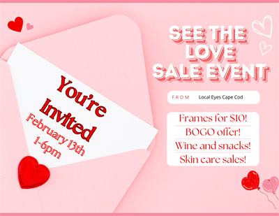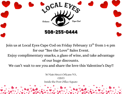 Join us at Local Eyes Cape Cod on Friday February 13th from 1-6 pm for our “See the Love” Sales Event.
